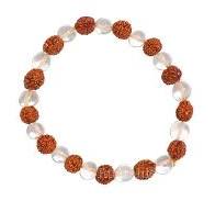 it is generally considered acceptable and even beneficial to wear a Sphatik (Quartz crystal) mala and a Rudraksha mala together. They are both considered sacred and are believed to complement each other, with Sphatik representing the feminine, ethereal, and cold element, while Rudraksha represents the masculine, earthly, and warm element.
